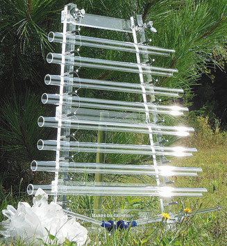 The Crystal Harp is a musical instrument consisting of 8 crystal quartz tubes. The purity of its sound and its beauty makes it a truly unique instrument.